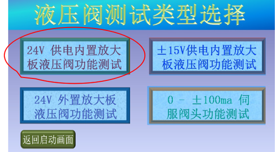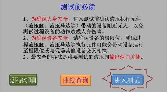 3、確認現場人員和設備安全后,點擊“進入測試”,進入液壓閥測試類型選擇畫面;